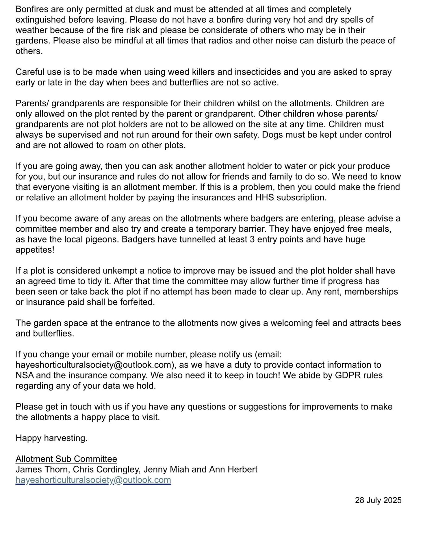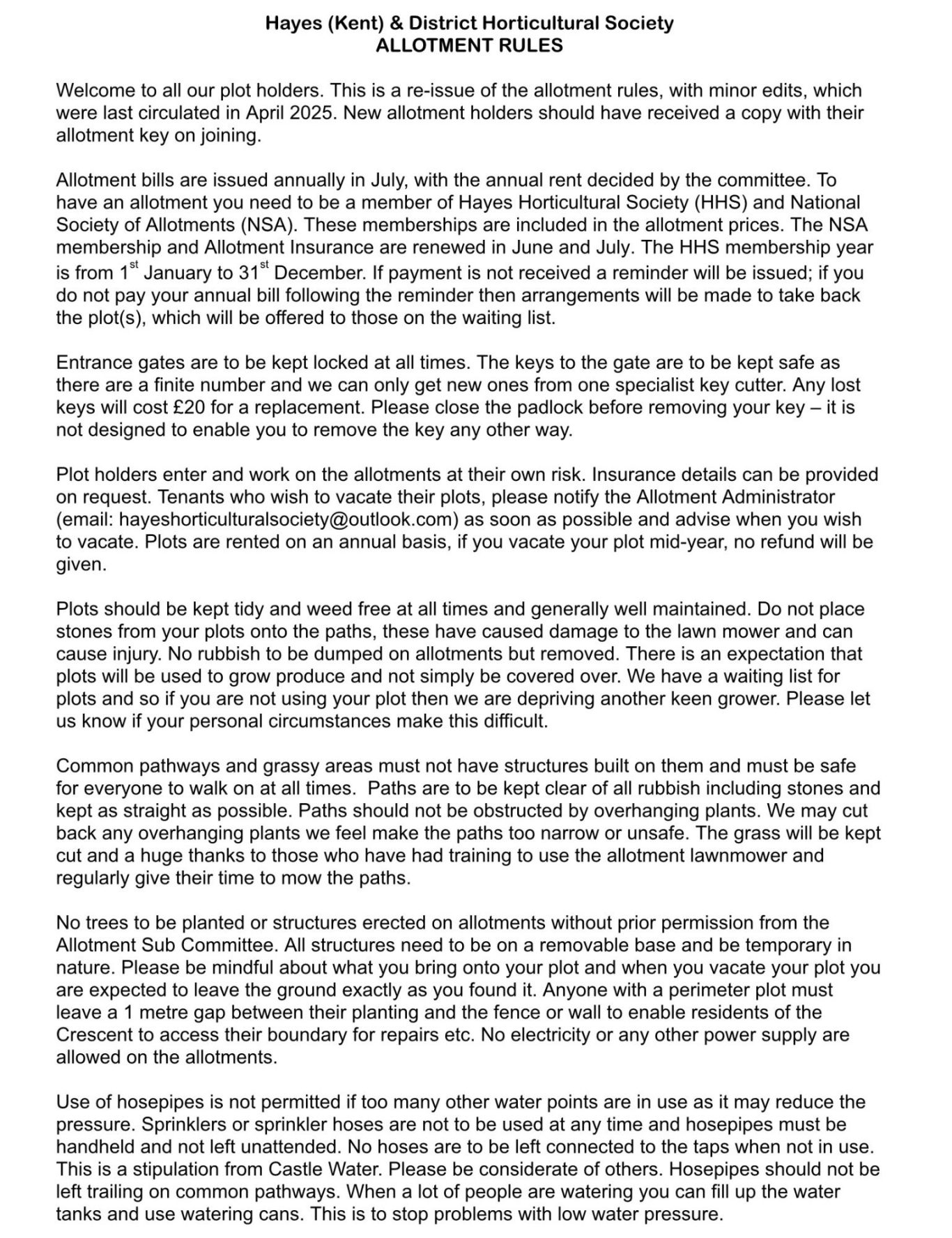 Hayes Horticultural Society Allotment Regulations
